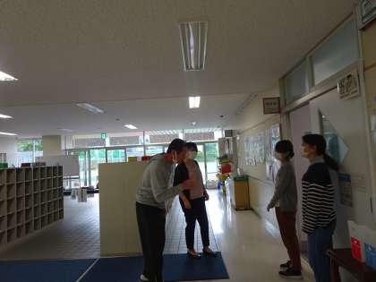 担任と話す時に、嬉しそうな顔をしていたり、恥ずかしそうな顔をしていたり、とても微笑ましい光景です。課題が簡単だったとか、難しかったとか、いろいろな反応がありました。それぞれに頑張っています。