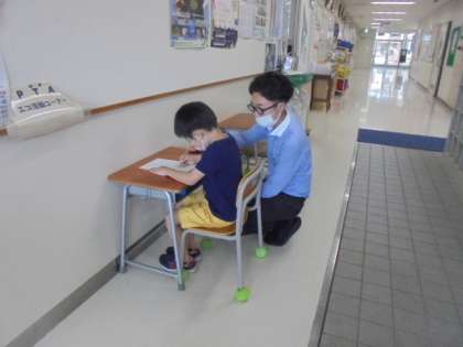 26日(火)は学習課題配布の最終日でした。子どもたちは、元気な姿で課題を受け取りに来ました。1年生はいすに座り、姿勢をよくして「いし」と書くこともしました。先生から大きなはなまるをもらってとても嬉しそうでした。3週間に渡る課題配布では、保護者の皆様に大変お世話になりました。ご理解とご協力に感謝いたします。