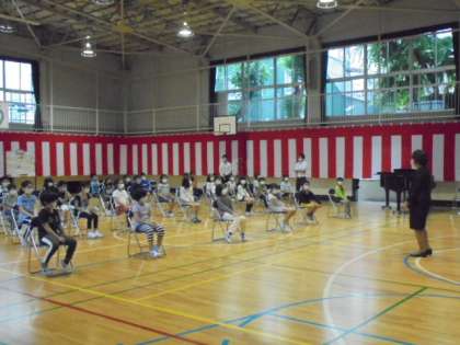 6月1日(月)、分散登校午後の部の2時間目は、3年生と4年生の「学年開き」を行いました。「どんな学校にしたいか」の発表、アドジャンでのお楽しみ、校歌と続き、最後は、養護教諭による「新型コロナウィルスの予防」についての話がありました。「うつらない、うつさない」ための7つの方法について、スライドを見ながら学習しました。どの回でも話をよく聞いていました。