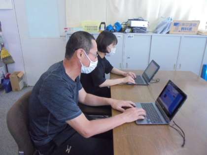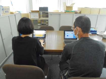 3日(水)の朝、5年生と6年生の先生はタブレットを操作していました。ロイロノートを使って朝の会をするためです。「おはようございます。」という先生からの言葉に対して、「おはようございます。」とオンラインで返信がたくさんありました。先生たちもとても喜んでいました。