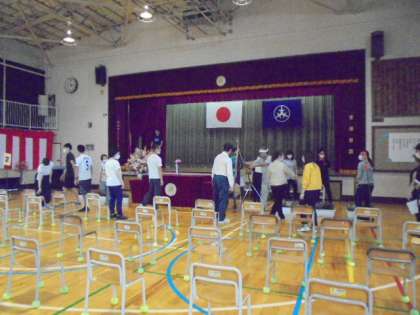5日(金)の午後、入学式の最終準備を行いました。先生たち、主事さんたちが力を合わせて、いすを運んだり、消毒をしたりしました。6日(土)の入学式を、今か今かと待っています。1年生のみなさん、明日は元気に登校してください。