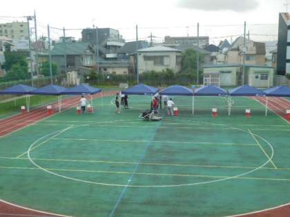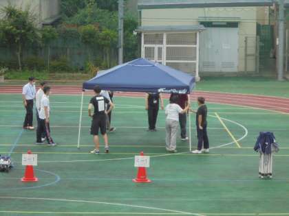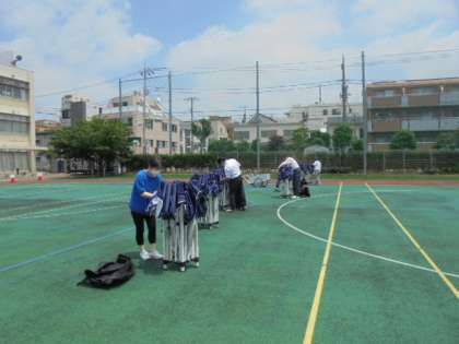 8日(月)、避難をする子どもたちを暑さから守るために、テントを用意しました。主事室、事務室、栄養士、養護教諭、すまいるルームの先生が手分けしてテントを組み立てたり、片付けたりしました。子どもたちの安全を守ることができて本当によかったです。