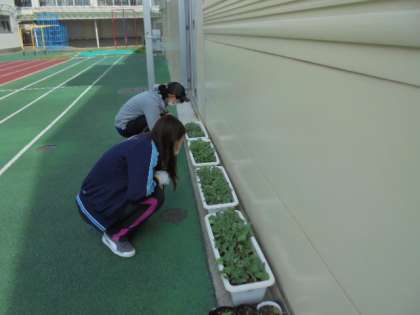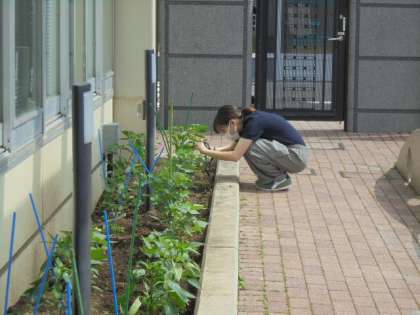 9日(火)、野菜の成長を確認したり、青虫の観察をしたりする先生たちの姿がありました。子どもたちの笑顔を楽しみに準備をしています。