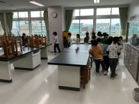 4年生は学年合同で理科の学習をしました。単元名は「空気と水」です。空気や水は押し縮められるかを課題に、取り組みました。最初はビニール袋に空気を入れて押し縮めました。縮めていくうちにビニール袋がパンと割れた人もいました。次は、水です。担任の先生たちが用意した「水風船」を恐る恐る縮めていました。