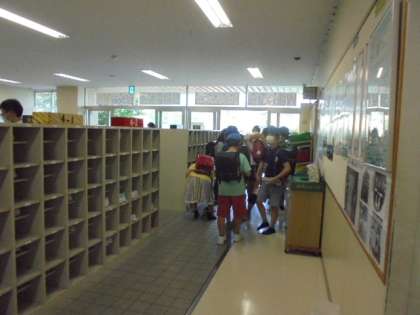 分散登校第2週2日目の午後の部も無事に終わりました。昇降口では、「また来週ね。」「さようなら」と挨拶を交わす姿が見られました。1年生の保護者様には、暑い中での送り迎えをありがとうございました。放課後、先生たちは清掃と消毒作業を行いました。また、毎月実施している校内の安全点検をグループごとに行いました。