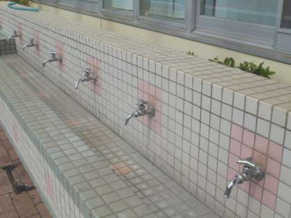 本校の水飲み場は、蛇口数が少ないことから、11日(木)増設作業を行いました。同時に、コロナウィルス感染拡大予防の観点から、蛇口の形も変えることにしました。