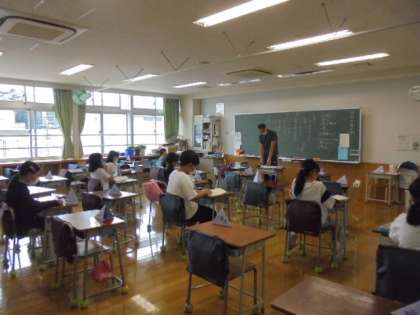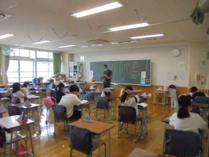 5年生は、国語、算数、総合の学習をしました。国語では、音読の仕方について子どもたちの考えを発表していました。
