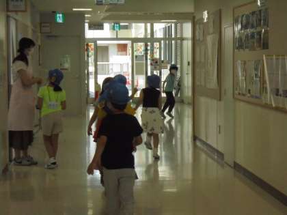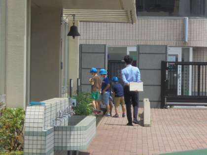 1年生と2年生が合同で学校たんけんをしました。2年生は、同じグループになった1年生と間をあけながら歩き、校内の案内をしました。「ここが2年生が育てている畑だよ。」「ここは保健室だよ。」とやさしく教える姿がありました。