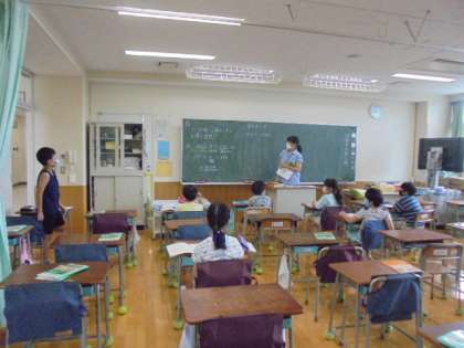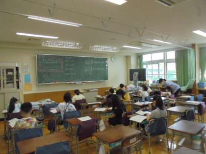 3年生の算数の様子です。2クラスに分かれて学習をしています。自分の考えを発表したり、友達の考えを聞いたりして「なるほど」と理解をしています。