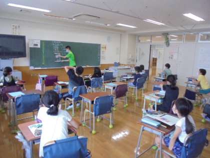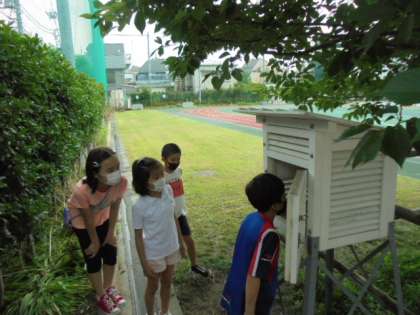 4年生の理科の学習の様子です。「1日の気温の変化」の「くもりの日」の変化を調べていました。百葉箱の学習をしてから、1時間おきに温度計を見に行きました。午前の部の結果と午後の部の結果は、来週の授業で発表し合うそうです。
