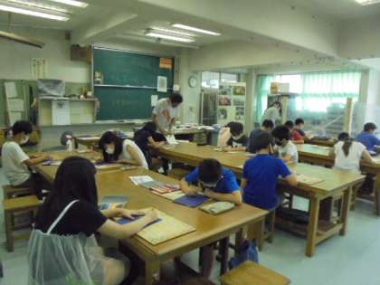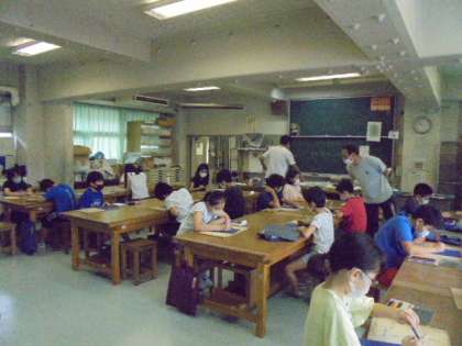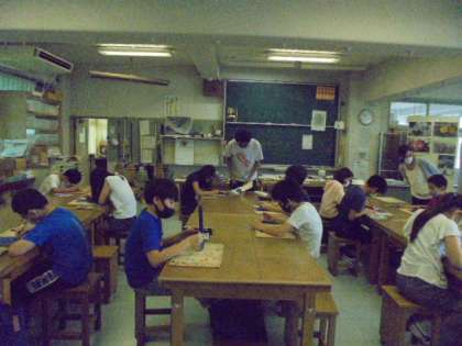 5年生は、今学期最初の図画工作の学習をしました。花の絵を描き、できた人からカーボン紙に写す作業に入りました。集中して取り組む姿が立派でした。