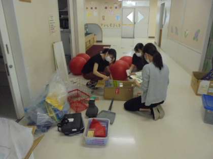 18日(木)は、3年生以上の子どもたちが分散登校しました。1年生と2年生の先生は、授業の準備をしながら、登校する上級生を迎えたり、倉庫の片付けをしたりしていました。
