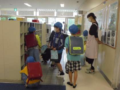 分散登校が終了するにあたって、上履きの持ち帰り指導をしました。来週からは毎週末に持ち帰って洗うことになります。徐々に通常の生活に戻っていけるようにと思います。
