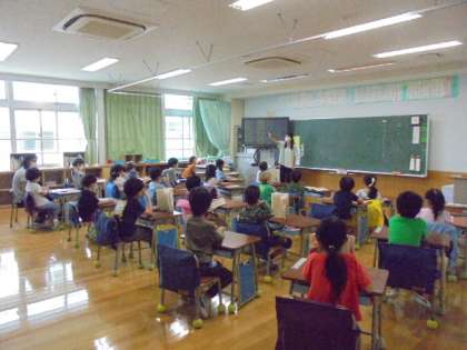 23日(火)の2時間目、1年生は教科「日本語」の時間でした。小林一茶の俳句を声に出して、読みました。何回も読んでいるうちに、五・七・五のリズムになっていることに気付きました。