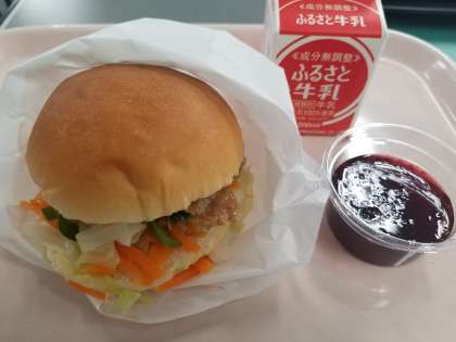 変えて、ハンバーガーの献立です。まだ簡易給食が続きます