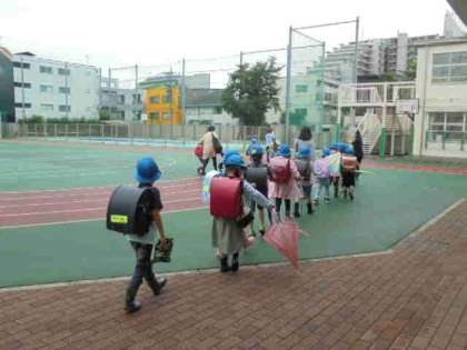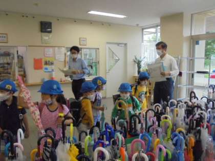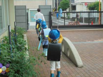 25日(木)の1年生の下校の様子です。朝降っていた雨が止み、先生や主事さんに「傘を持ち帰りますよ。」と声をかけられていました。安全に帰宅できるように指導しています。