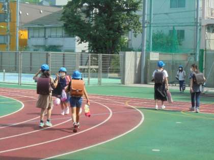 26日(金)の下校の様子です。一斉登校が始まり、最初の週末を迎えました。子どもたちは、上履き袋を持ち、先生や主事さんに挨拶をしながら、自宅に向かいました。「一緒に帰ろう。」「バイバイ。」「月曜日にまた会おうね。」の声が、明るく優しく響いていました。