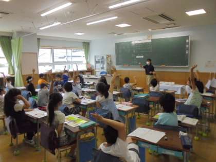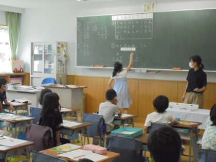 29日(月)の2時間目、2年2組は算数の時間でした。繰り上がりのあるたし算の学習で、今回は「4+27」のひっ算の計算の仕方を考えました。ひっ算にしたときに、4を十の位に書くのか、一の位に書くのかを考えていました。