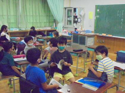 29日(月)の3時間目、2年1組は国語の時間でした。「話し方、聞き方に気を付けて、話したり聞いたりしよう」をめあてに取り組んでいました。2〜3人のグループを作り、自分の話をしたり、相手の話を聞いたりしました。