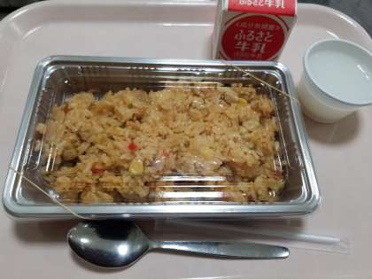 混ぜご飯がおおい簡易給食でしたが、今日はカレー粉を