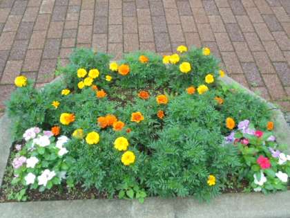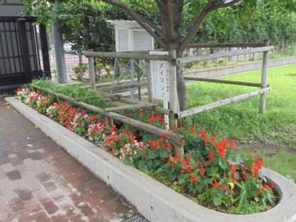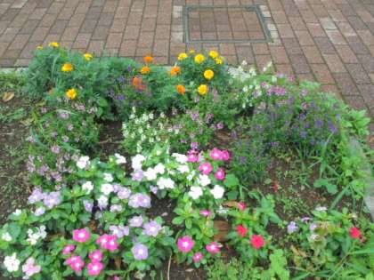 花壇の様子です。主事さんたちが植えた夏の花がきれいに咲いています。登下校の際に、子どもたちも見ています。