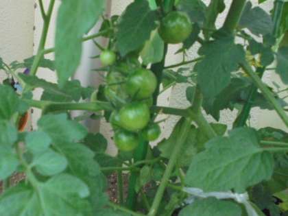 2年生が育てている夏野菜です。ここまで成長しています。写真以外では、ししとうやオクラもあります。