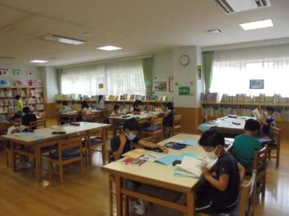 3日(金)の2時間目、2年2組は図書室で読書をしていました。本の返却をしてから、自分の読みたい本を探して静かに本を読んでいました。「この本おもしろいよ。」と教えるすてきな姿もありました。