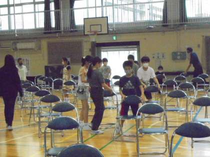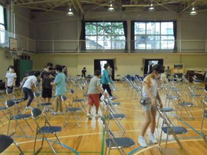 3日(金)の午後に行われる保護者会に向けて、6年生が体育館にいすを並べていました。最上級生として、学校のためにすすんで力を発揮していました。