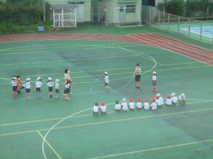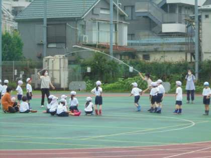 6日(月)の3時間目、1年1組は体育の時間でした。校庭で長なわとびに挑戦しました。先生のかけ声とともになわの中に入り、跳ぶことができました。