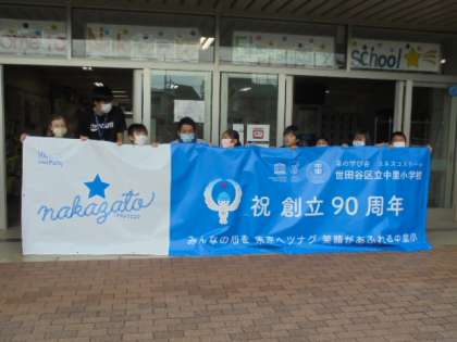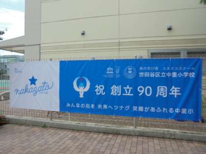 11日(土)の中休み、届いたばかりの「創立90周年記念横断幕」をお披露目しました。校庭で遊んでいた子どもたちも「わー」と声に出したり、拍手をしたりして喜んでいました。横断幕の1枚は、北門脇のフェンスに取り付けました。