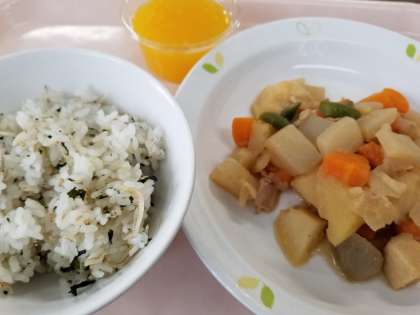りがついたごはんは食欲を刺激します。すこし濃い目の煮物