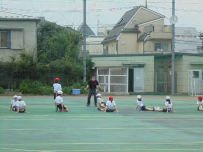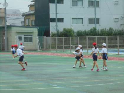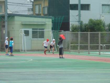13日(月)の2時間目、4年1組は体育の時間でした。最初にしっぽ取りゲームをして体をほぐしました。その後、かけっこに取り組みました。