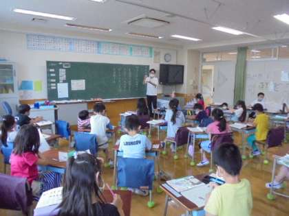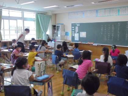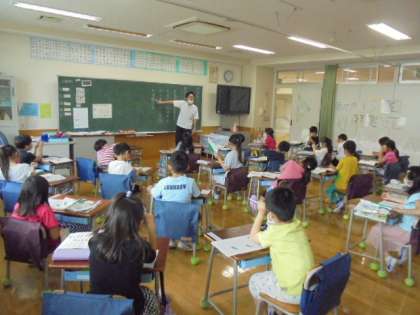 13日(月)の5時間目、1年2組は国語の時間でした。「おばさんとおばあさん」の表し方について考えました。子どもたちは、伸ばす音とその書き表し方に気付きました。