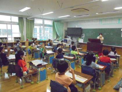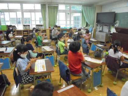 14日(火)の3時間目、1年1組は音楽の時間でした。今月のうた「だれにだってお誕生日」を元気に歌ってから、「ありさんのおはなし」という歌の練習をしました。途中の手拍子も上手にできました。