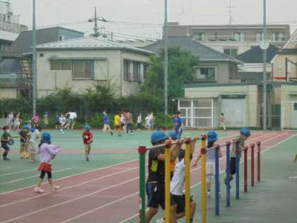 14日(火)の給食後、雨が上がっていることを確認した子どもたちは、元気に校庭に出てきて遊んでいました。体育館割り当ては4年生でした。元気に走り回る姿がありました。