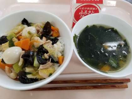今日は具だくさんの中華丼です。