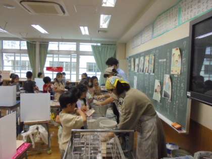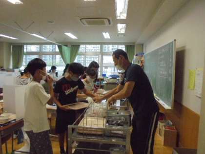 12時50分ごろから、「ごちそうさまでした。」の声が聞こえてきます。間隔をとりながら、食器を片付けていきます。毎日、給食ボランティアの皆様にお世話になっています。ありがとうございます。写真は上から、5年1組、2年1組、1年2組です。