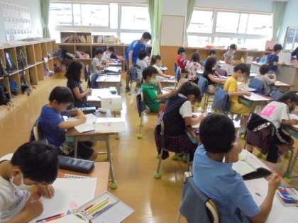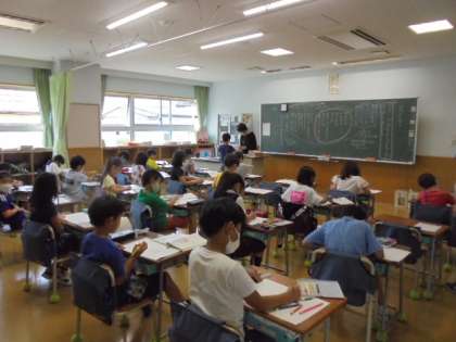 20日(月)の3時間目、2年2組は国語の時間でした。「スイミー」のお話を校長先生と一緒に読み進めています。今回は、「スイミーが元気を取り戻した様子を考えよう」をめあてに、取り組んでいました。