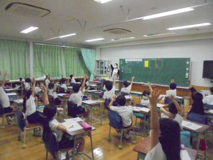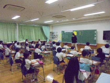 21日(火)の3時間目、2年1組は算数の時間でした。「数を書いたり、読んだりしよう」をめあてに、先生の出す3桁の数を書いたり、読んだりしました。