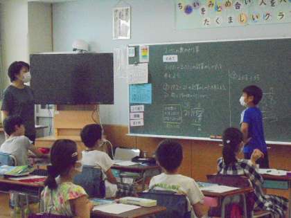 21日(火)の3時間目、4年生は算数の時間でした。3クラスに分かれて、「3桁÷2桁の計算の仕方を考えよう」をめあてに取り組んでいました。計算の仕方をみんなに伝えることもしました。