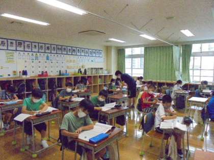 23日(木)の3時間目、4年生は算数の時間でした。「3桁÷2桁の計算の仕方を考えよう」をめあてに取り組んでいます。ひっ算は、商を立てる、掛ける、引く、下ろすの順番を繰り返すことで計算ができることを理解しました。