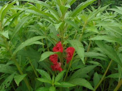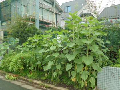 3年生の畑では、ヒマワリとホウセンカの草丈がより一層伸びました。ヒマワリの花ももうすぐ咲きそうです。ホウセンカは、赤やピンク、紫色の花を付けていました。