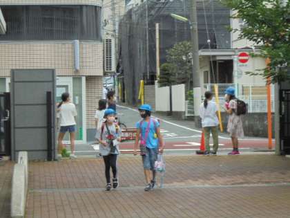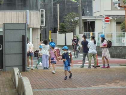 29日(水)、あいさつ週間6日目の朝です。北門と南門とに分かれてあいさつをしています。時折雨が降ってくるため、傘が手放せません。