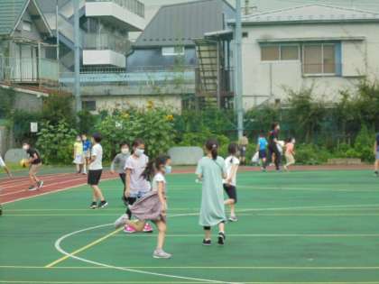31日(金)の中休みの様子です。5年生はクラス全員でおそろいのTシャツを着て、友達との絆を深めていました。子どもたちの自主的な活動が本当に素晴らしいです。すまいるルームの先生たちも、子どもたちの中に入って一緒に遊んでいました。