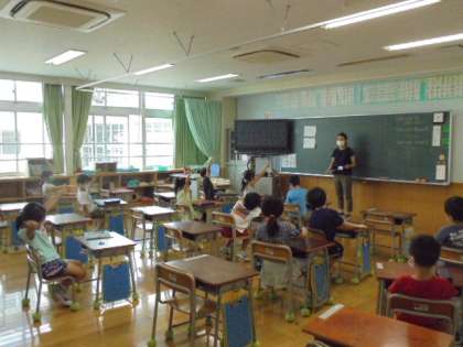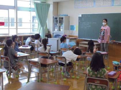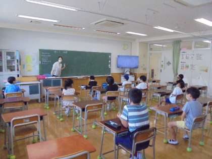 4日(火)、わくわくサマースクール2日目です。朝から太陽が照りつける中、子どもたちは元気に登校しました。担当の先生が1日目とは違いましたが、子どもたちは抵抗感なく学習に入ることができました。写真は上から、1年1組、1年2組、2年1組です。