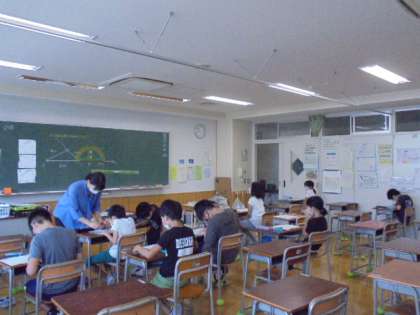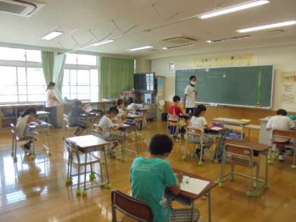 子どもたちは、学習の最後に振り返りカードの記入をします。何がわかったのかを自分で確認しています。写真は上から、5年1組、4年1組、4年2組です。