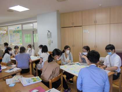 24日(月)、午前10時から教員のための研修会を行いました。8月3日の研修会でお世話になった講師の先生に再びお越しいただきました。「イエナプラン教育の実践2」と題して、前回の研修で出てきた課題について、考えたり、話し合ったりしました。