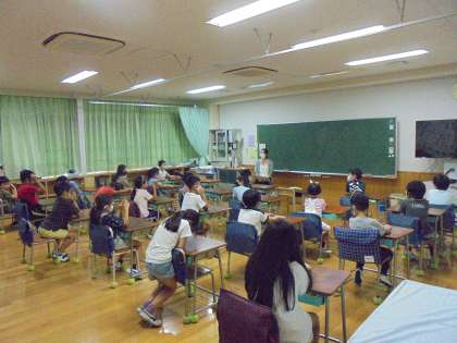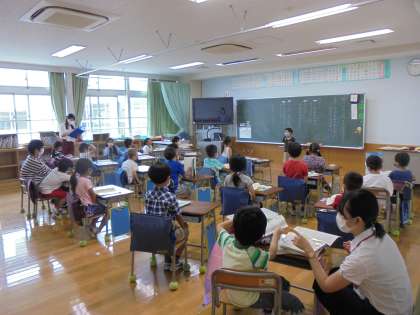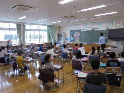 9月1日(火)の3時間目の様子です。1年1組は、夏休みの思い出を一人ずつ前に出て話しました。1年2組は、算数の時間でした。2年1組は、座席決めの話し合いをしていました。
