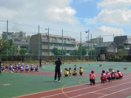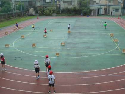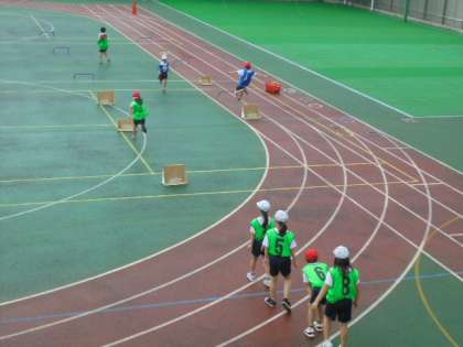 3日(木)の2時間目、3年生は体育の時間でした。校庭を広く使って「小型ハードル走」に取り組みました。走るコースを横にずらしながら、飛び越す楽しさを味わいました。残り10分というところで、雨に降られてしまい、学習のまとめを昇降口で行いました。