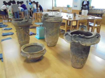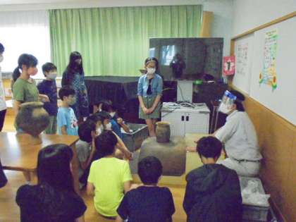 10日(木)の5・6時間目、6年生はランチルームで社会科の学習を行いました。今回は、世田谷区文化財担当の方にお越しいただき、土器について学びました。弥生時代の土器が薄いのに丈夫だと知って驚いたり、土器の役割に興味を示したりしていました。